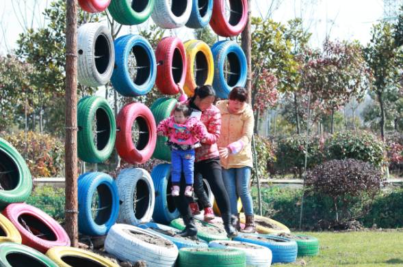 兒童在花草間嬉戲玩耍,各種輪胎做成的秋千,非常的卡哇伊,來(lái)到這邊的感覺,就像是走了二次元世界,迅速穿越回兒時(shí),找回童年!