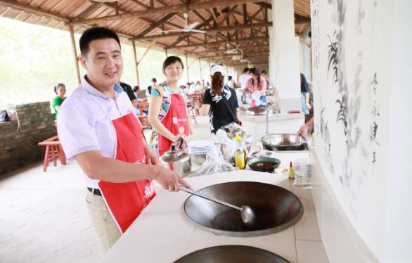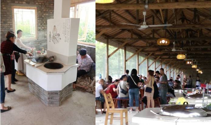 親手采摘的蔬菜,可以在戶外大鍋灶燒農(nóng)家柴火飯。柴火飯配上這里香糯的大米,農(nóng)家美味留在唇齒舌尖。